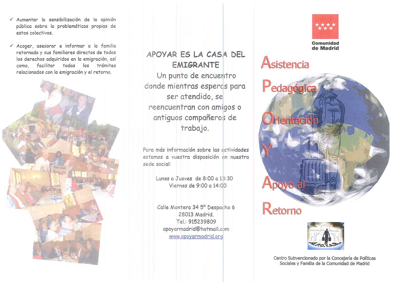 Dirección: Calle Montera 34, piso 5º, pta6 – 28013 Madrid – Tels.: 91 522 70 38 – 91 522 39 34 – Mail: apoyarmadrid@hotmail.com